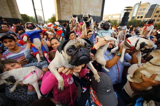 Así es, leíste bien: ¡Quinta reunión MASIVA de perros pug!